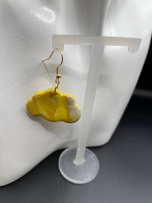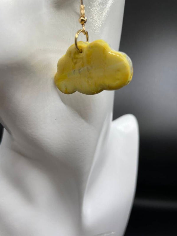 Polymeer oorbellen. Gele tint met wat glitter erin. Heel fleurig, ideaal voor de lente.